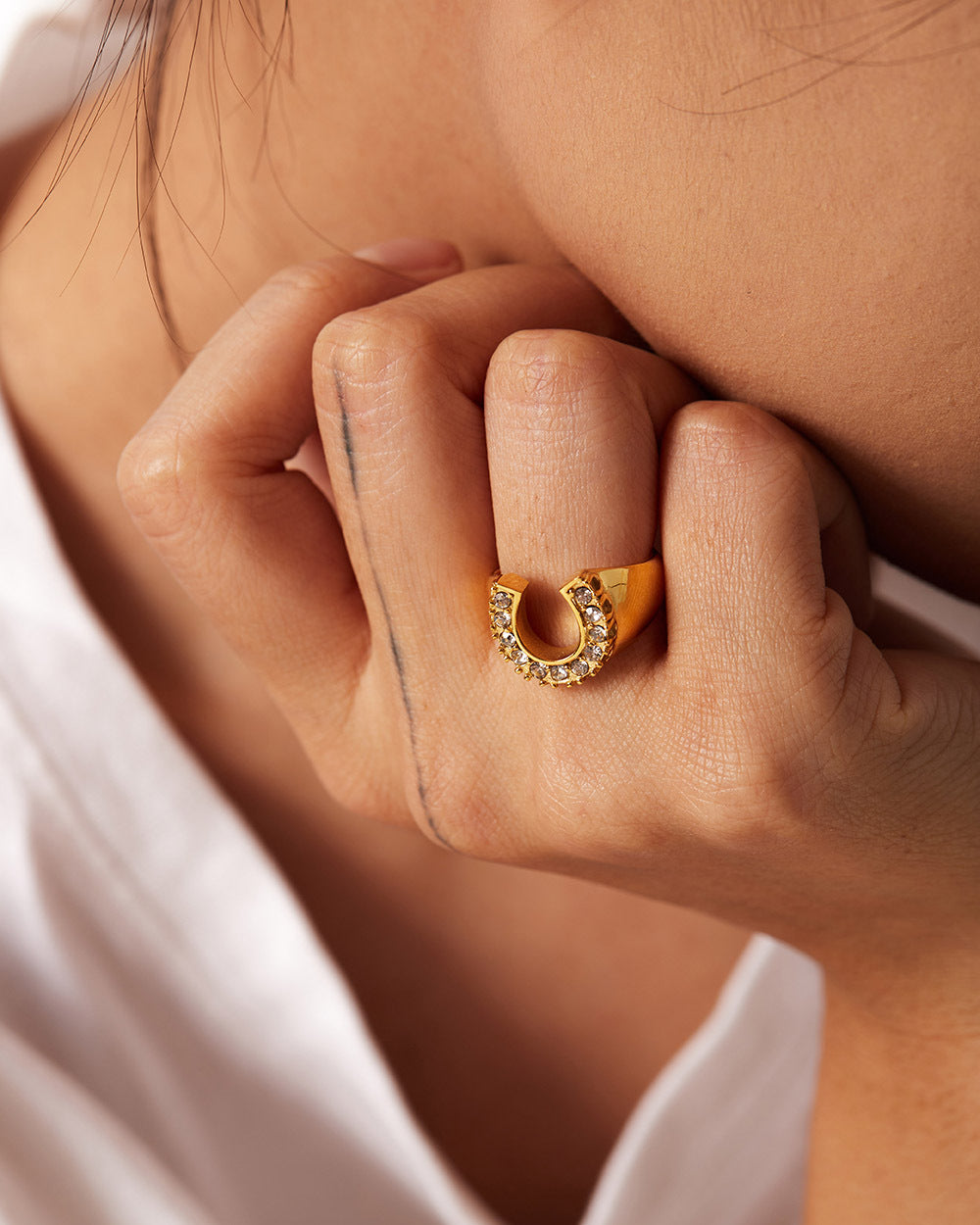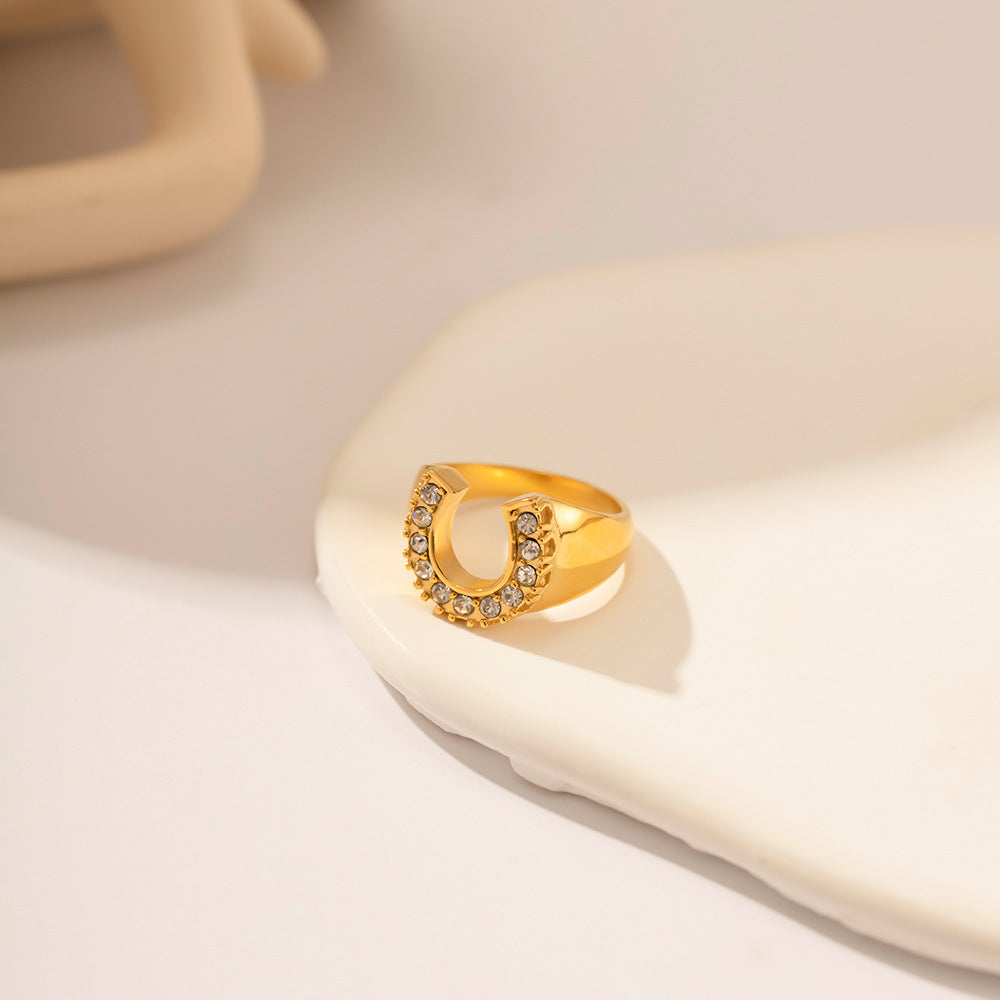 18K Gold Exquisite Fashion Inlaid Zircon Horseshoe Design Versatile Ring