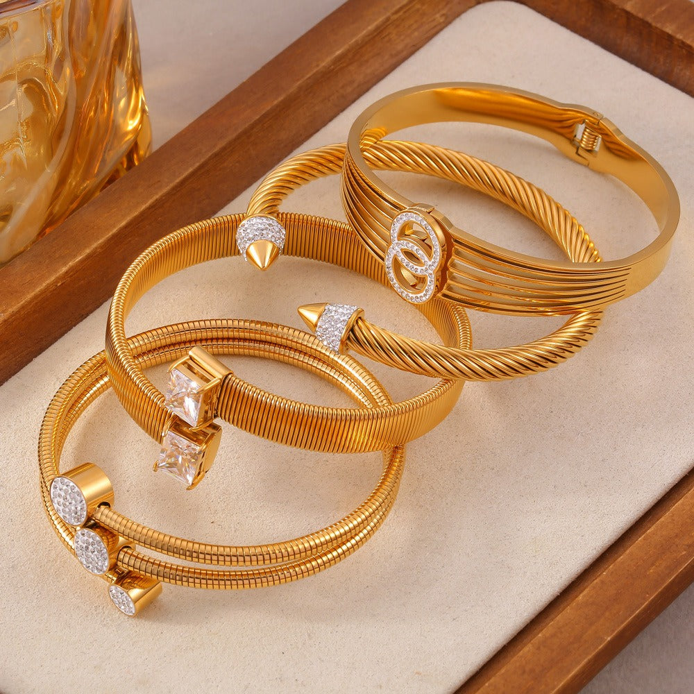 18K gold light luxury fashion geometric shape with line design bracelet