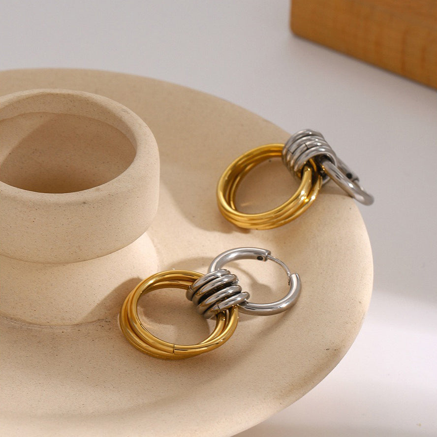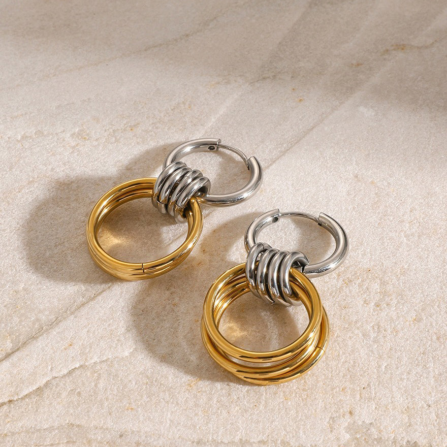 Three small hoop hanging on the hoop, adding layering and dynamic beauty to the earrings, making them more design-oriented and unique.