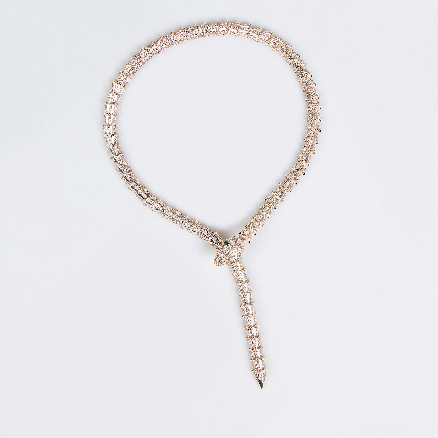 18K gold snake-shaped necklace inlaid with diamonds, luxurious and noble