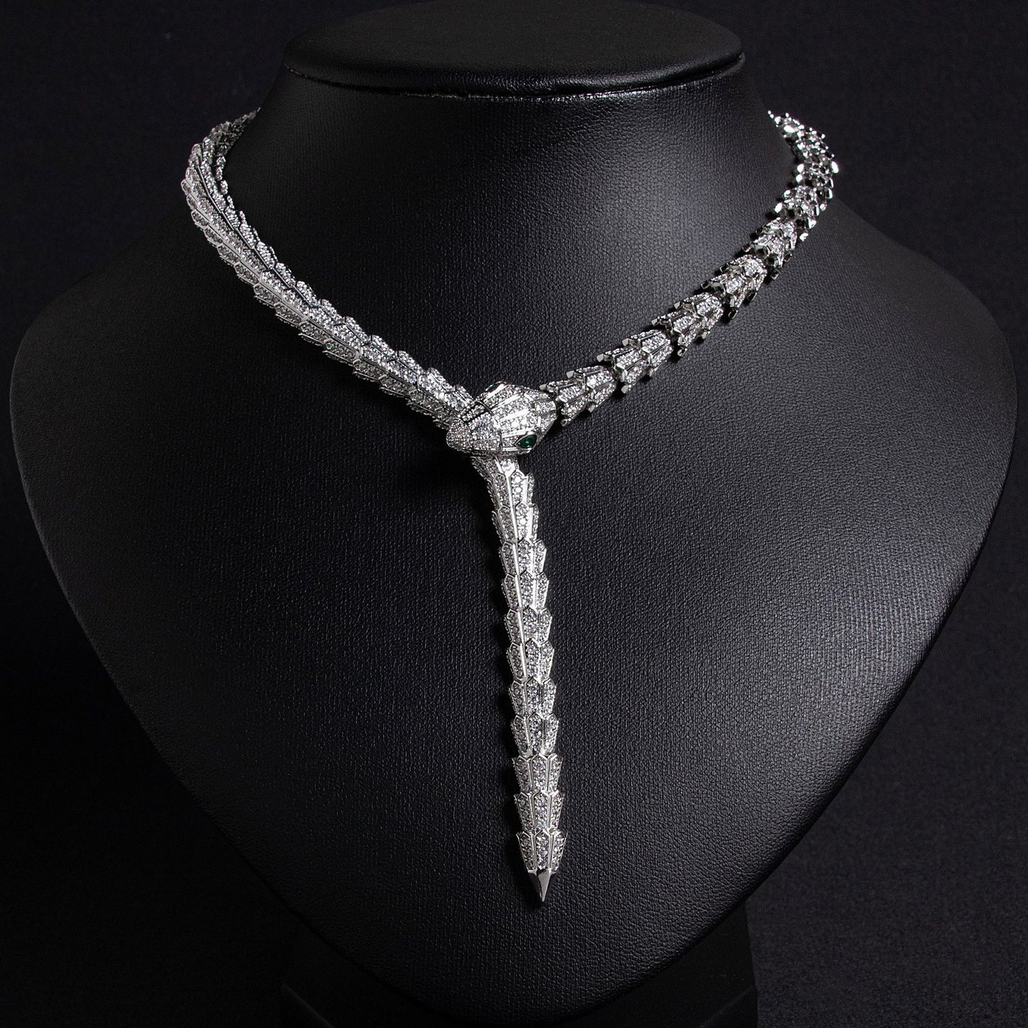 This necklace, inspired by the spirit snake, perfectly combines coolness and elegance. The necklace adopts a winding snake design, with clear scales and full of shining diamonds, presenting a lifelike feeling as if it were real. Whether in terms of design or wearing effect, it exudes unparalleled high-end texture and unique charm.