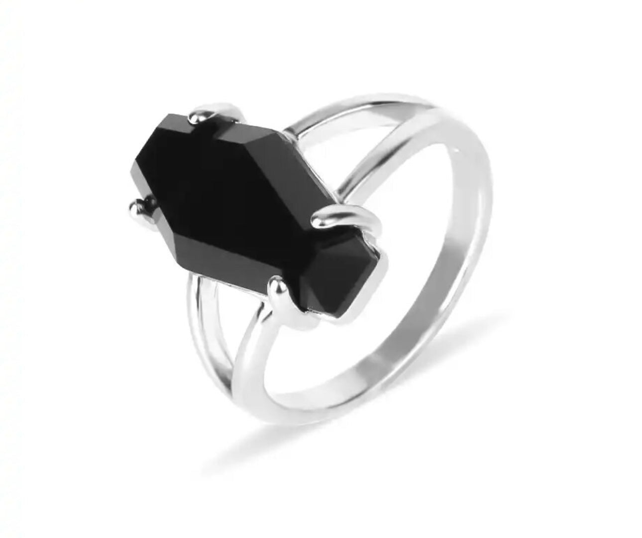 Plated. Stainless steel. Zircon black coffin gem on top.