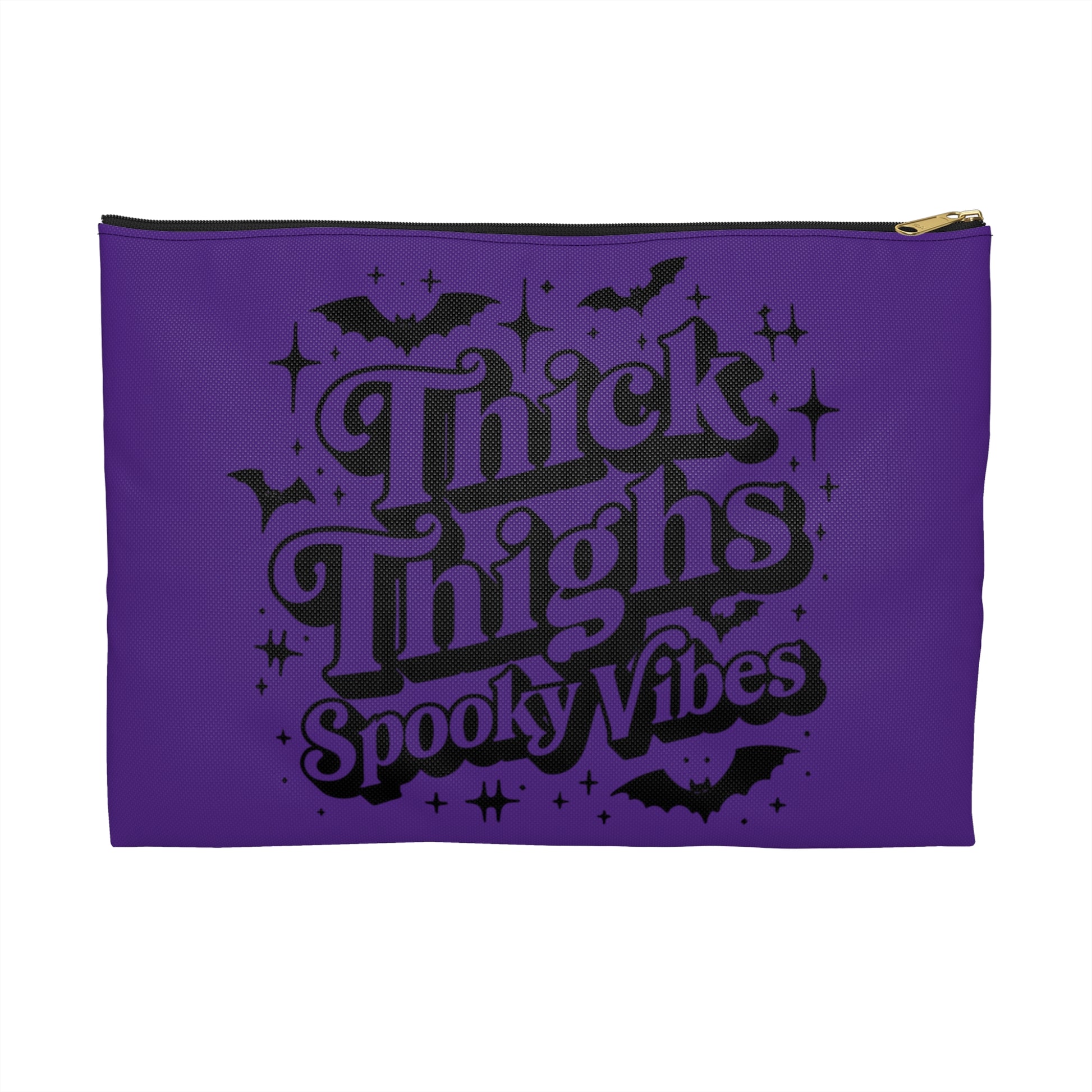 Thick Thighs Spooky Vibes cosmetics accessories pouch perfect for storing makeup essentials. Adds a fun and quirky touch to your daily routine. Ideal for those who love Halloween and embrace their unique style.