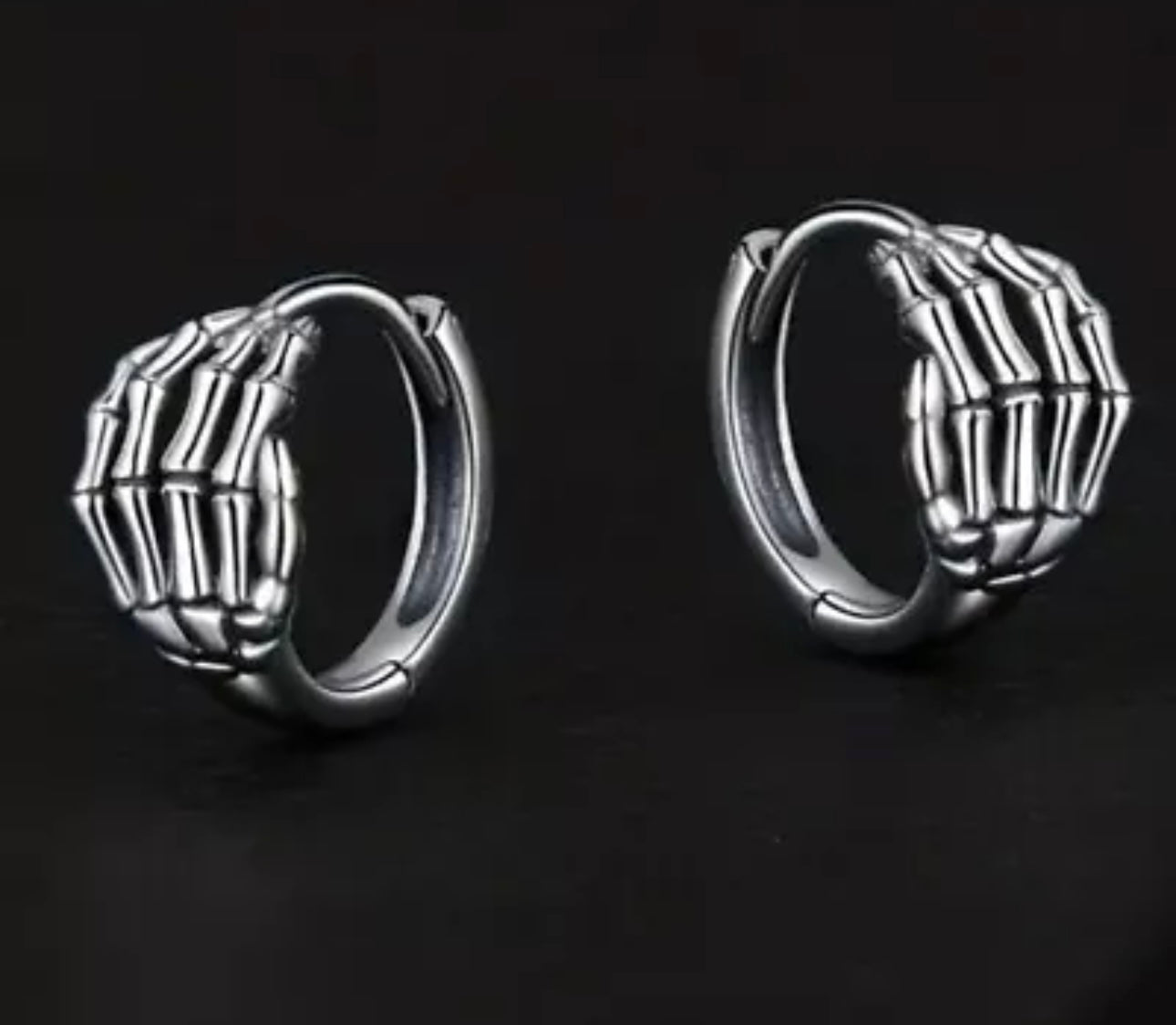 New. Clicker style hoop. Skeleton hands. Sterling 925 plate.