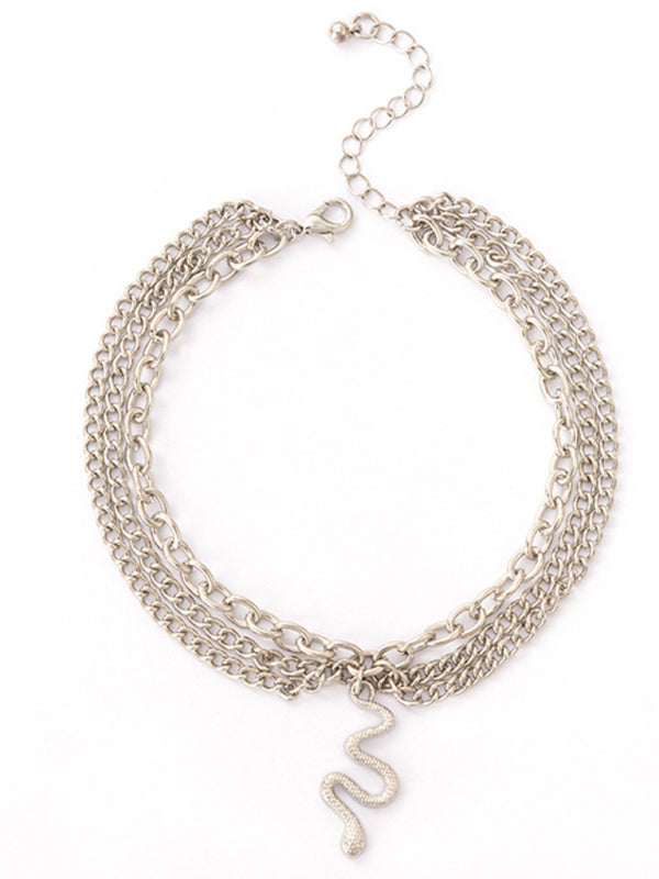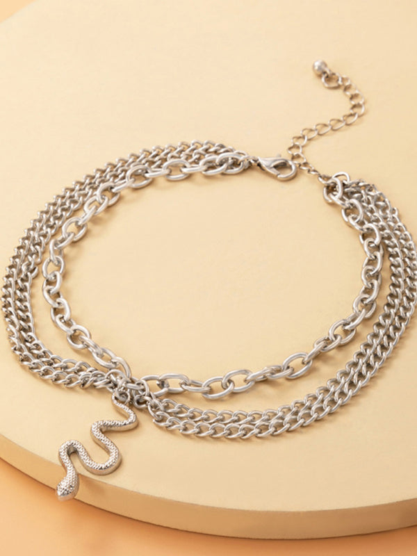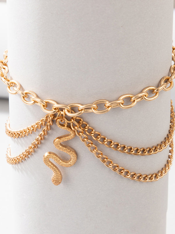 Gold heart-shaped chain anklet tassel snake-shaped pendant three-layer anklet for women