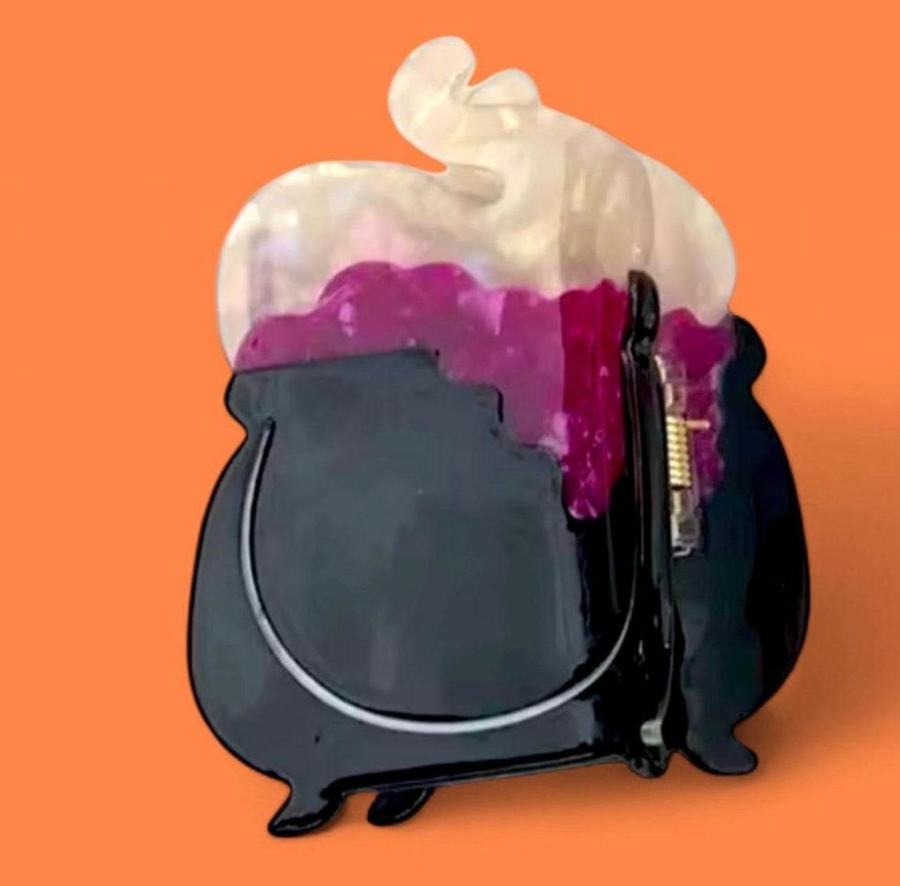 New. Acrylic. Spring style. Shimmery witch cauldron.