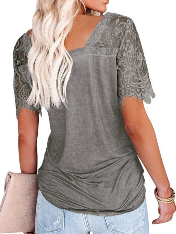 Short Sleeve V Neck Feather Lace Sleeve Blouse