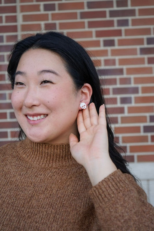 Get ready to show off your spooky side with our new Skeleton Studs! These whimsical earrings feature an adorable skeleton design crafted from a lightweight and durable shimmer acrylic. They're a fun and festive way to add a playful touch to your Halloween style, and they'll catch the light with a subtle sparkle.
