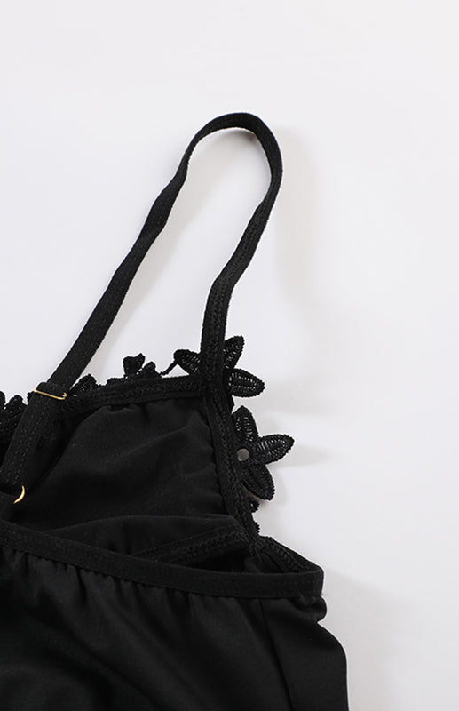 Spaghetti Straps Crochet Lace Hollow Out Bra Thong Lingerie Set