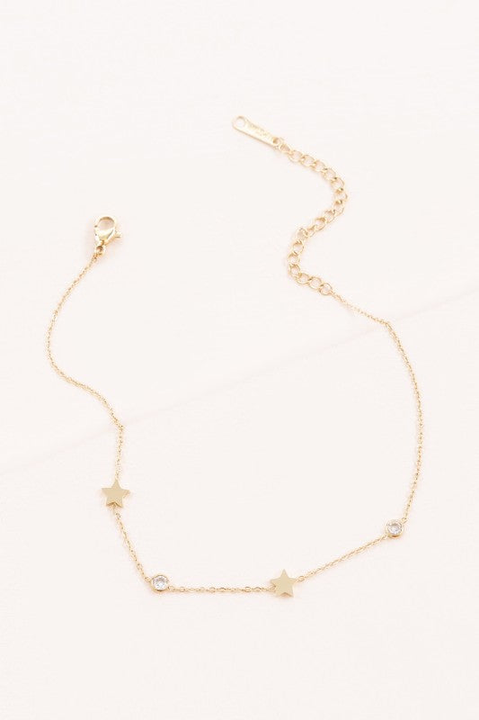 Dainty gold chain anklet with rhinestones and stars!