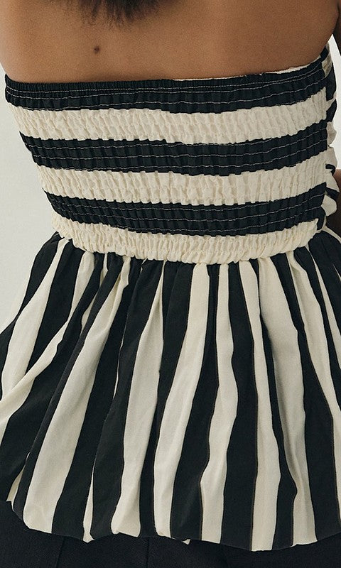 Striped strapless peplum top