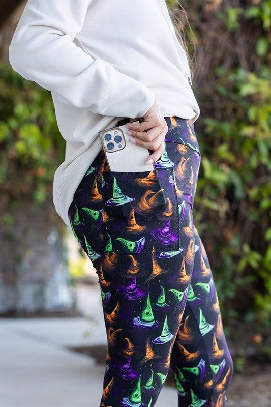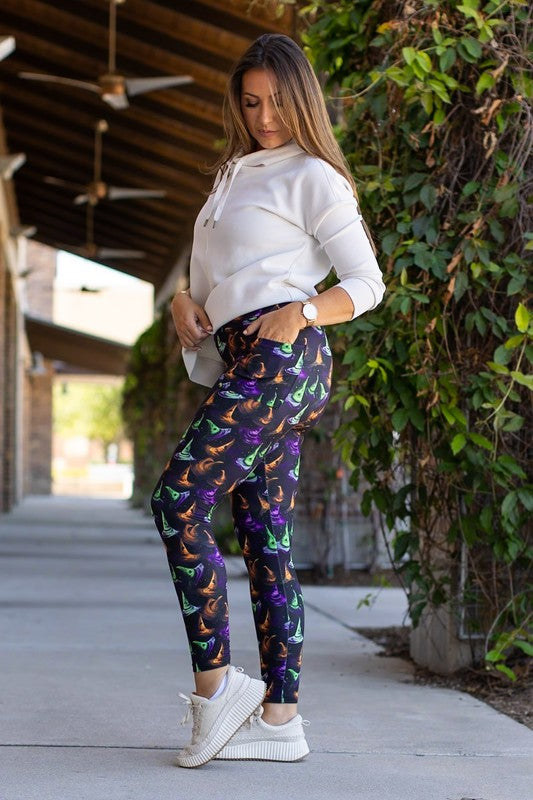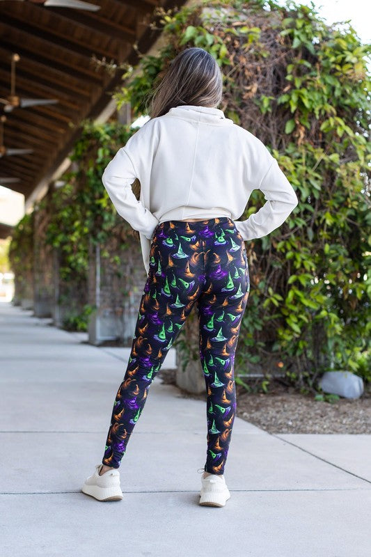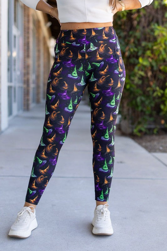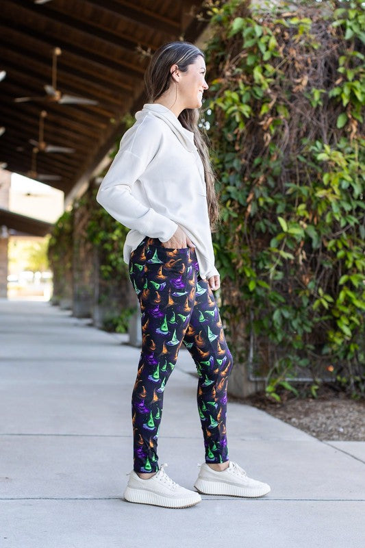 Get ready to cast a stylish spell with our Winifred Witches Hats Leggings! These comfortable and cozy leggings feature a unique witch hat design, perfect for Halloween and other festive occasions. Embrace the magic and make a statement with these must-have leggings. Limited quantities available, so pre-order now!