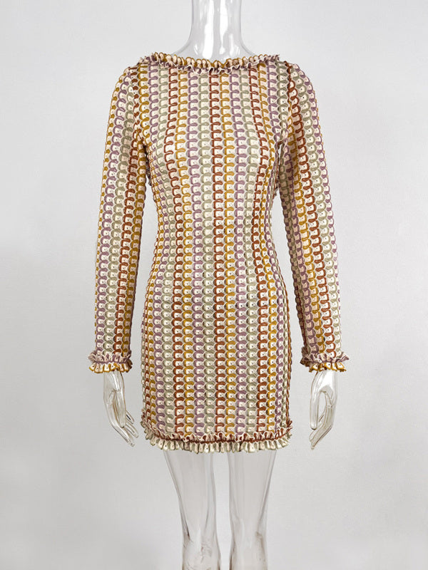 Women's contrasting lace halter back long-sleeved mini dress