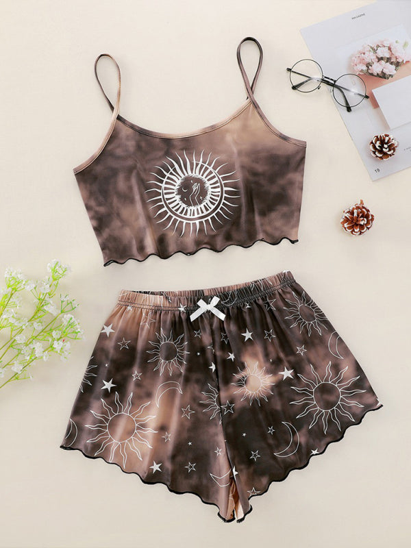 Women's Tie-Dye Xingyue Printing Camisole Top + Shorts Homewear Set